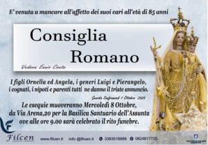 E’ venuta a mancare all’affetto dei suoi cari all’ età di 85 anni Consiglia Romano ...