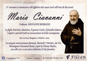 E’ venuta a mancare all’affetto dei suoi cari all’ età di 89 anni Maria Ciavanni ...