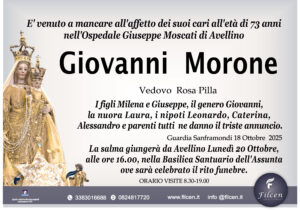 E’ venuto a mancare all’affetto dei suoi cari all’età di 73 anni nell’Ospedale Giuseppe Moscati di Avellino ...