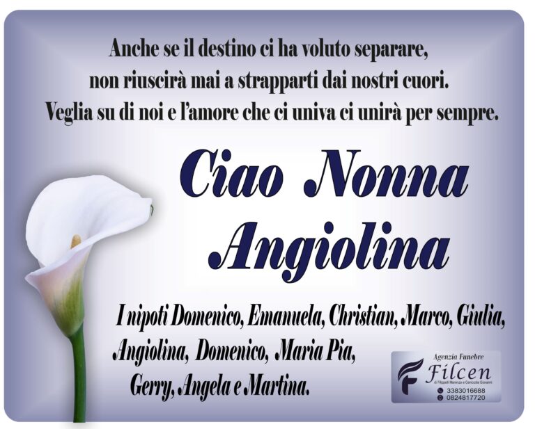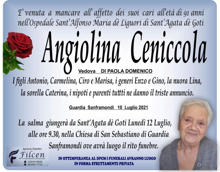 E’ venuta a mancare all’ affetto dei suoi cari all’ età di 91 anni nell’Ospedale Sant’Alfonso Maria Dè Liguori di Sant’Agata Dè Goti