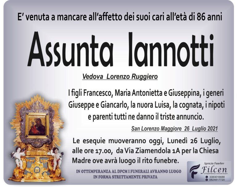 E’ venuta a mancare all’ affetto dei suoi cari all’ età di 86 anni