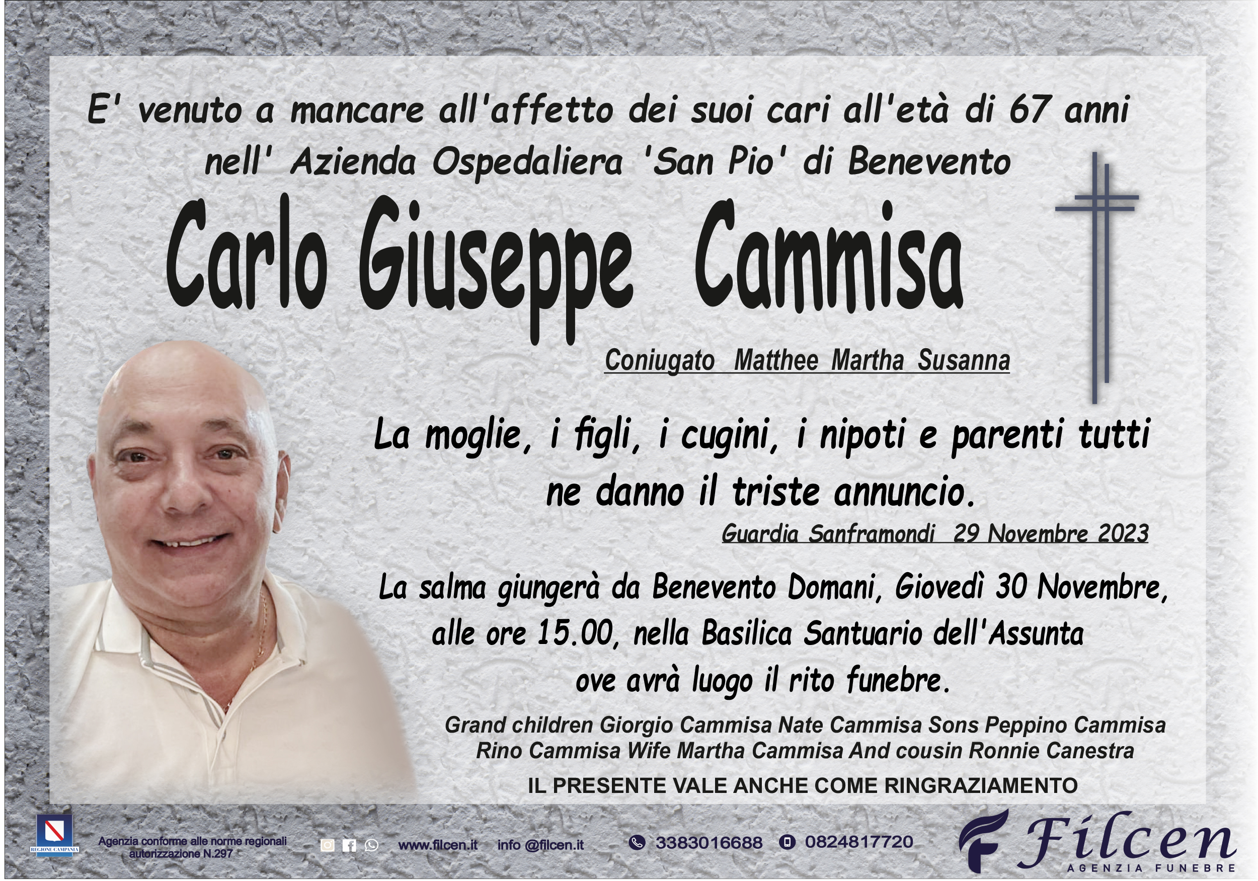 E’ venuto a mancare all’affetto dei suoi cari all’età di 67 anni nell’ Azienda Ospedaliera ‘San Pio’ di Benevento