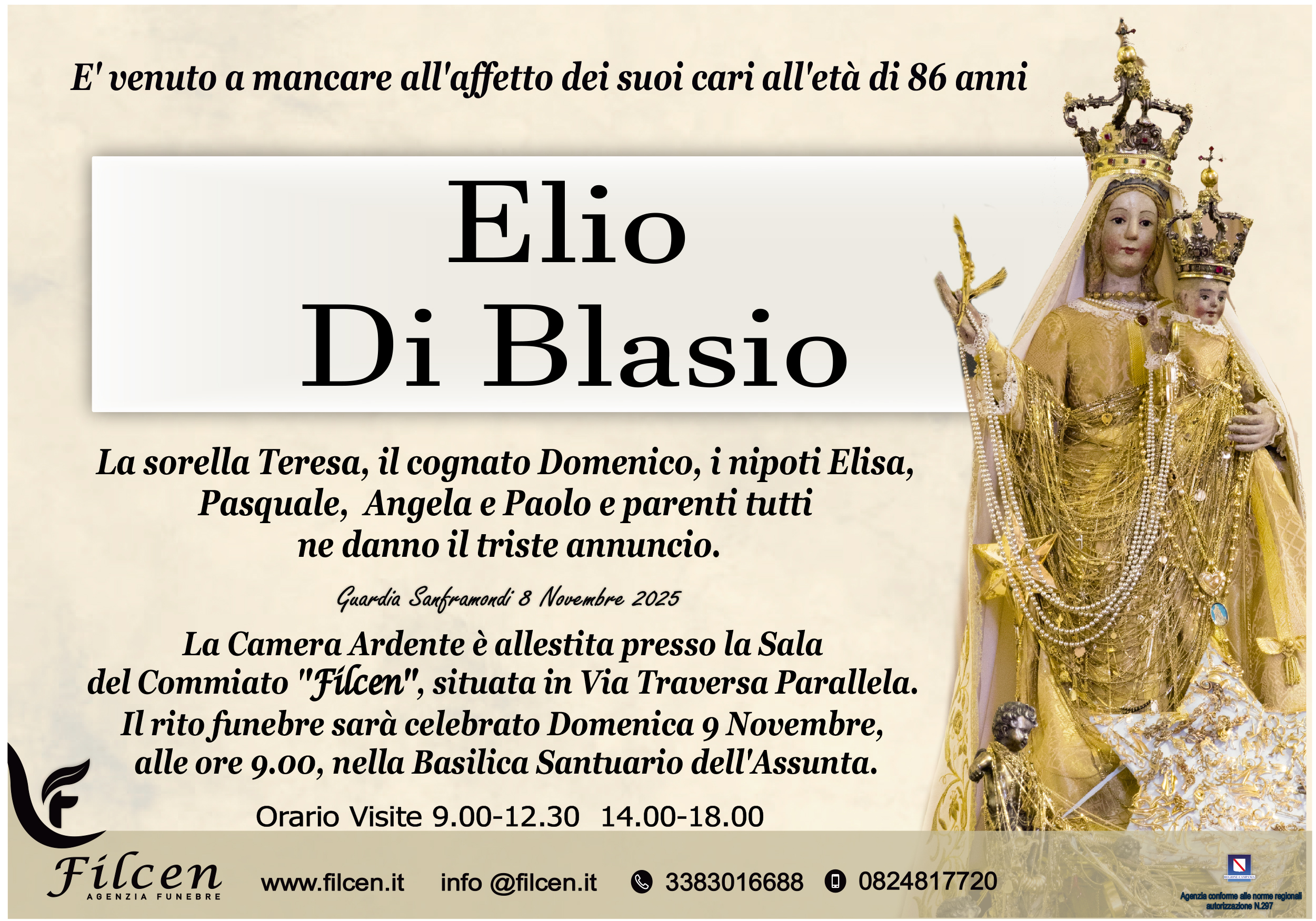 E’ venuto a mancare all’affetto dei suoi cari all’età di 86 anni