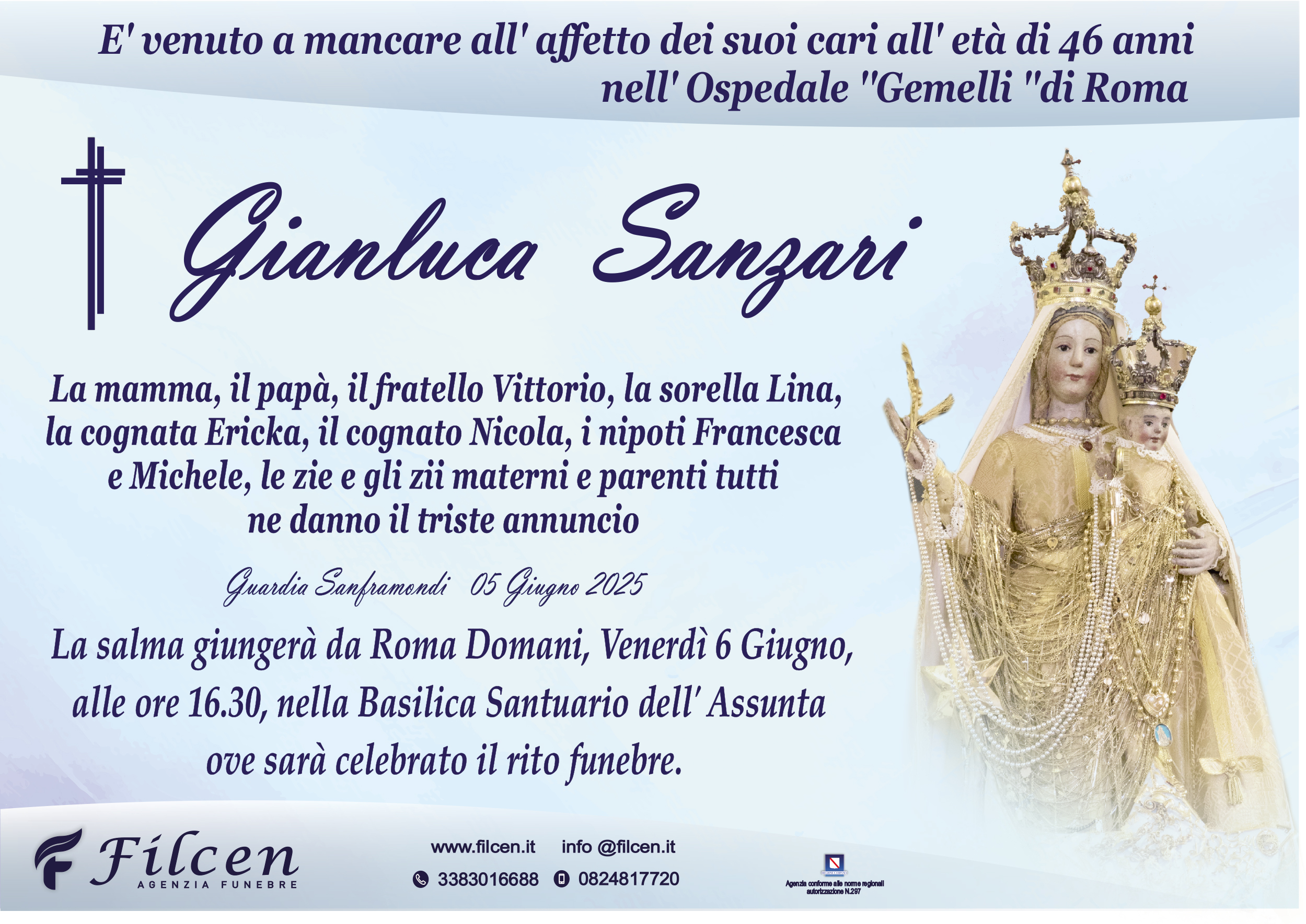 E’ venuto a mancare all’ affetto dei suoi cari all’ età di 46 anni nell’ Ospedale ”Gemelli ”di Roma