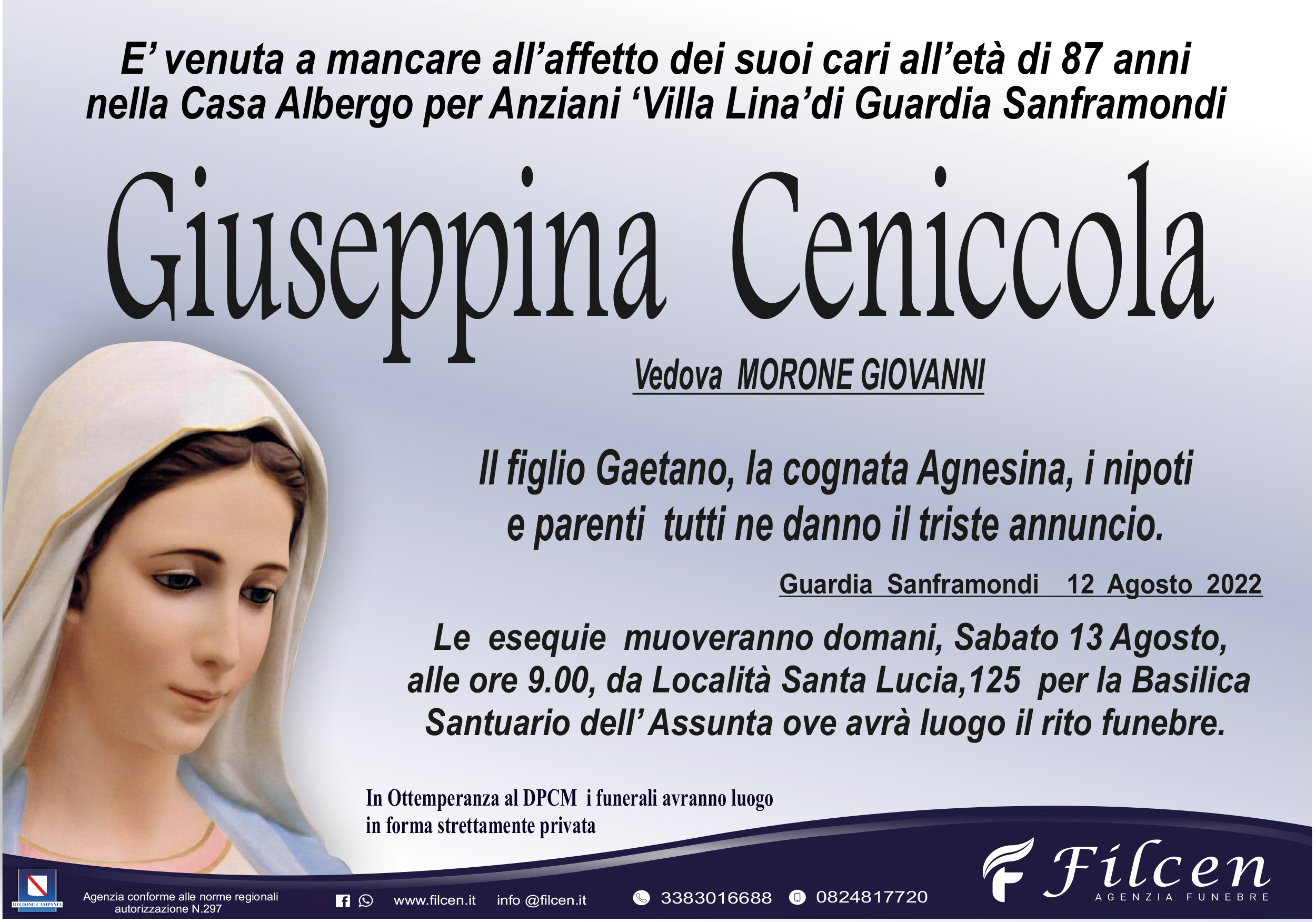 E’ venuta a mancare all’affetto dei suoi cari all’età di 87 anni nella Casa Albergo per Anziani ‘Villa Lina’ di Guardia Sanframondi