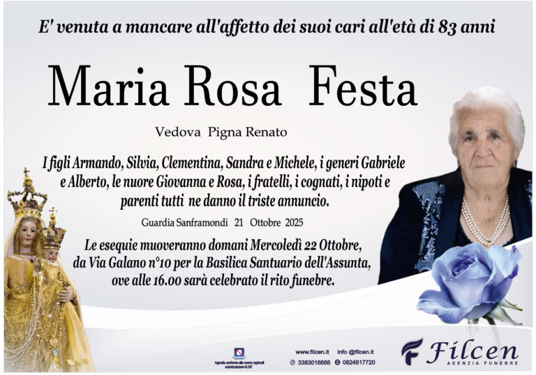 E’ venuta a mancare all’affetto dei suoi cari all’età di 83 anni