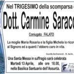 Ne danno il triste annuncio i figli Michele, Giuseppe e Mina, la nuora Giusy, il genero Gianni, il fratello, le sorelle, i cognati, le cognate, i nipoti e parenti tutti.