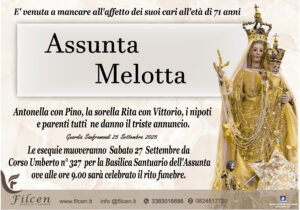 E’ venuta a mancare all’ affetto dei suoi cari all’età di 71 anni Assunta Melotta ...