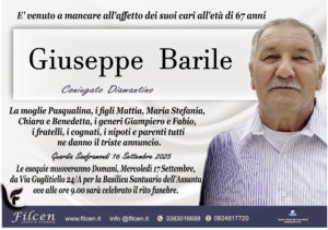 E’ venuto a mancare all’ affetto dei suoi cari all’età di 67 anni Giuseppe Barile ...