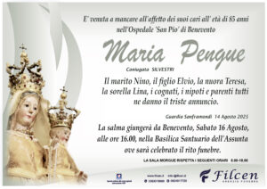 E’ venuta a mancare all’affetto dei suoi cari all’ età di 85 anni nell’Ospedale ‘San Pio’ di Benevento ...