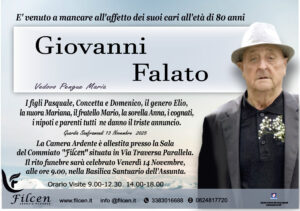 E’ venuto a mancare all’affetto dei suoi cari all’età di 80 anni Giovanni Falato ...