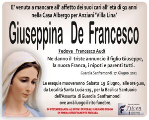 E’ venuta a mancare all’ affetto dei suoi cari all’ età di 91 anni ...
