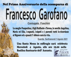 Nel Primo Anniversario della scomparsa di Francesco Garofano